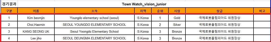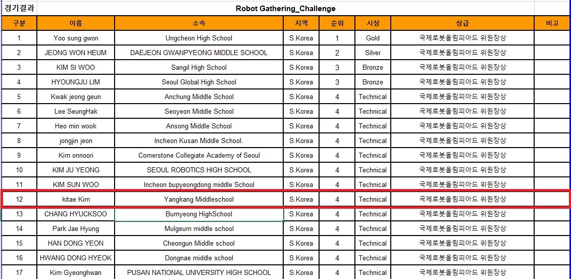 목동 로봇AI코딩센터에서는 전국대회에 참가한 거의 모든 학생들이 세계대회에 출전할 수 있는 기회를 얻었습니다. 그중 초등학생 4명, 중학생 5명 그리고 고등학생 1명이 출전하였고 모든 학생들이 입상하는 좋은 성적을 얻었습니다.